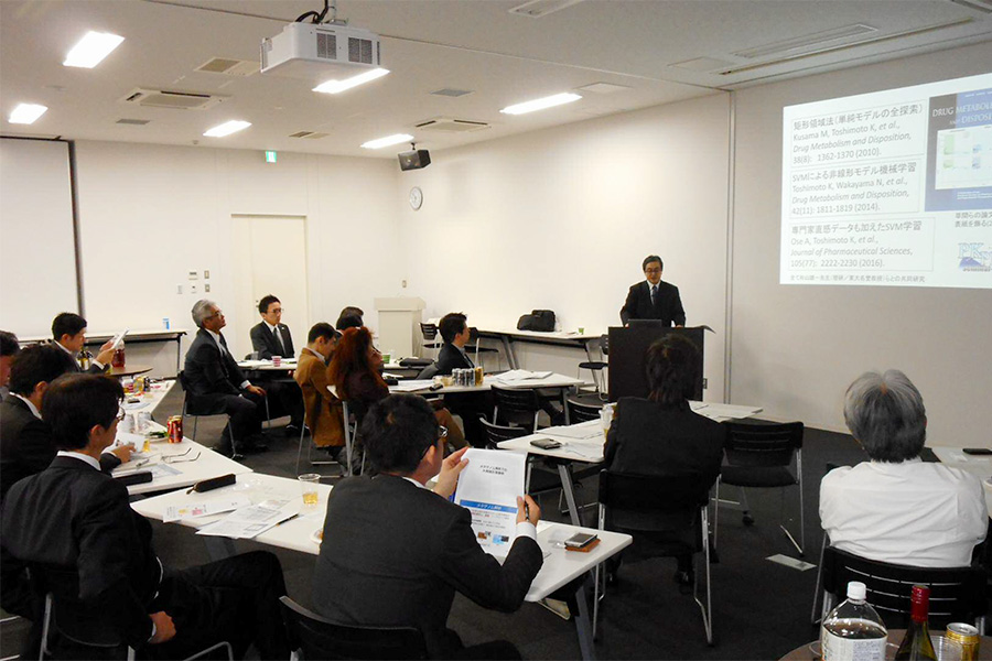 今回は、スーパーコンピュータやクラウドコンピューティングを使ったデータ解析の状況や、そこから応用されるスマート創薬、メタゲノム解析など、多岐にわたる研究内容について講義をいただきました。御参加いただいた企業や研究機関等の方からは質問が飛び交い、セミナー終了後も秋山先生との意見交換のみならず、参加者同士のネットワーキングも活発に行われました。