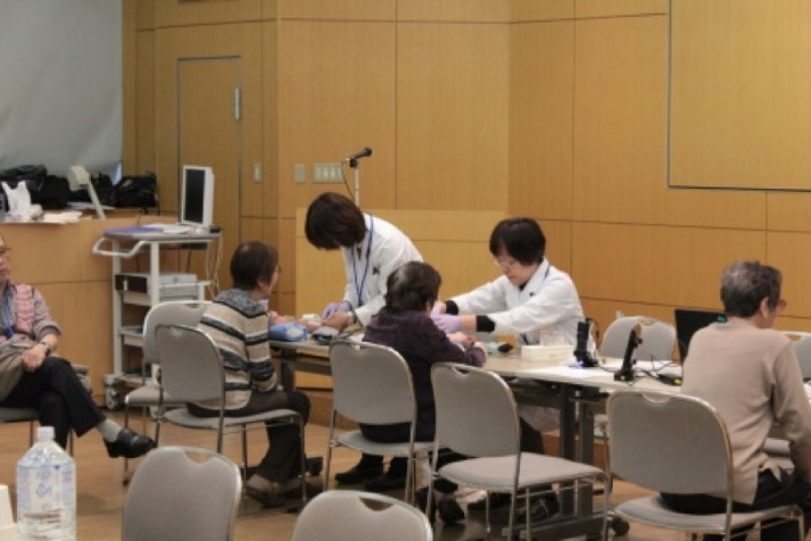 はじめに、慶應義塾大学医学部百寿総合研究センターの新井講師から、調査の目的や健康調査の内容、採取した血液等の用途などについて説明があり、参加者から同意を得て調査を開始しました。