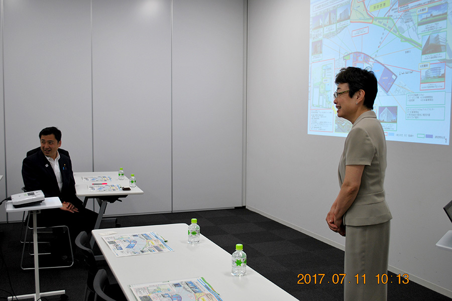 川崎市からキングスカイフロントにおける拠点形成の状況について説明があり、続いてリサーチコンプレックス事業の展開について慶應の服部・吉元各オーガナイザーから説明を行った後、鈴木殿町タウンキャンパス事務長から9月下旬に移転予定のⅡーA棟3・4階部分の説明をし、実際に現地に移動して観ていただきました。議員からは活発な質問が寄せられ、今後の議会においてその内容が生かされるとのことです。