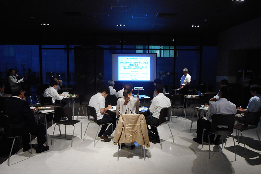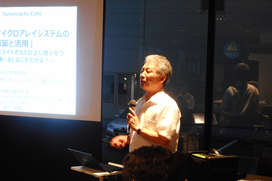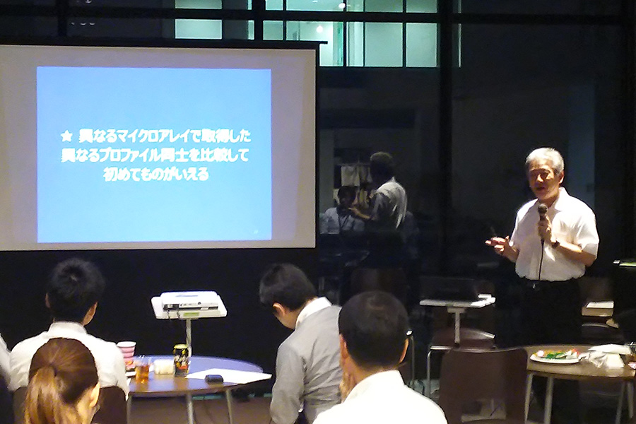 今回は、福島県立医科大学で進められている、震災復興プロジェクトの1つである「福島医薬品関連産業支援拠点化事業」の概要及び、その中でも独自技術を応用したタンパク質マイクロアレイシステムについてお話しいただきました。抗原マイクロアレイ・逆相タンパク質マイクロアレイ・抗体マイクロアレイを用いることで、1度に2万種類の症例について検証できるようになるなど、最先端の研究開発状況を教えてくださいました。