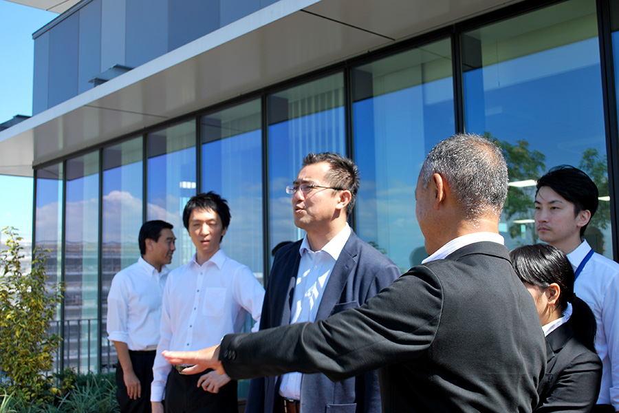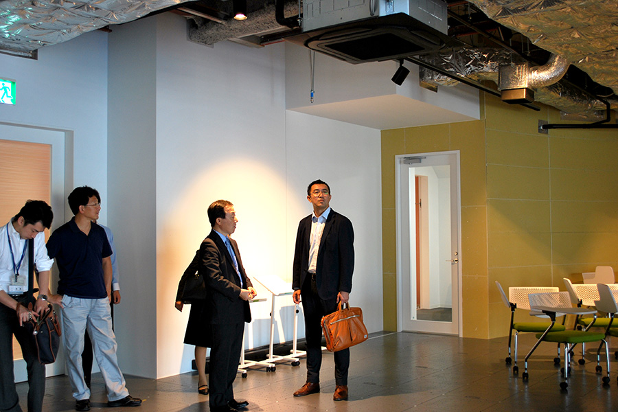 殿町のナノ医療イノベーションセンター(iCONM)4階の会議室で、川崎市の臨海部での取り組み、iCONMでのCOI概要,、リサーチコンプレックス推進プログラムについて説明があった後、iCONM施設および殿町タウンキャンパスが移転したばかりのResearch Gate Building TONOMCHI 2-A棟、LICを視察されました。大戸井企画官からは殿町エリアの強みを示してほしいといった激励の言葉をいただきました。