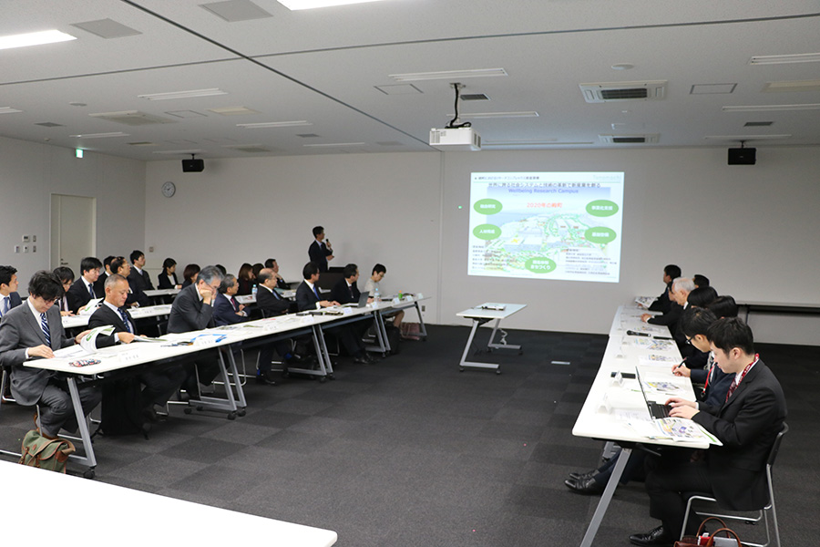 11月1日(水)13:00から16:00の日程で本リサーチコンプレックス推進事業監督機関である国立研究開発法人科学技術振興機構(JST)の濱口道成理事長以下、白木澤良子理事、田口敬子秘書室長をはじめイノベーション推進部の方々による拠点視察が行われました。