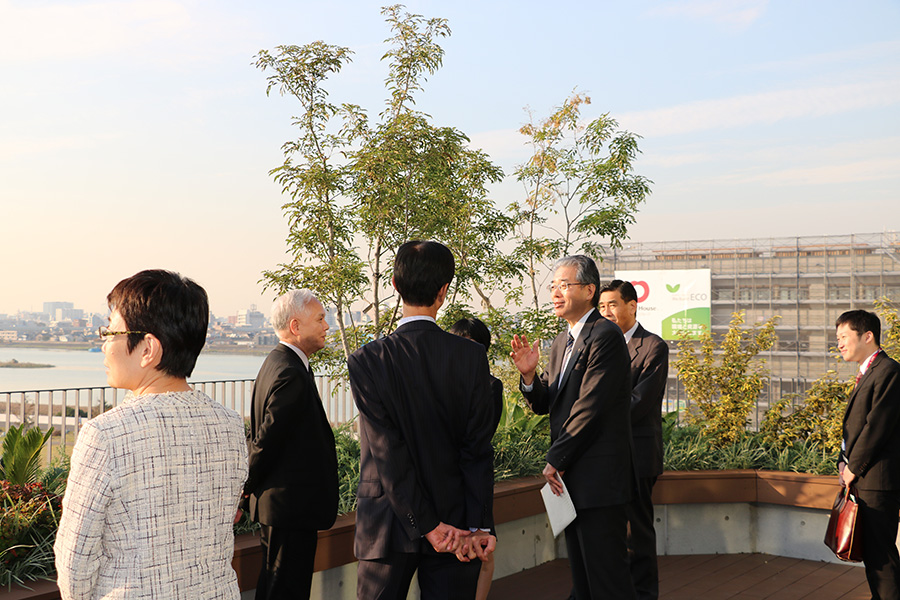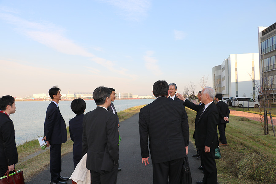 休憩をはさんで実施しました視察では、新たに竣工した慶應義塾殿町タウンキャンパスの施設及び隣接する公益財団法人実験動物中央研究所の施設を視察いただきました。