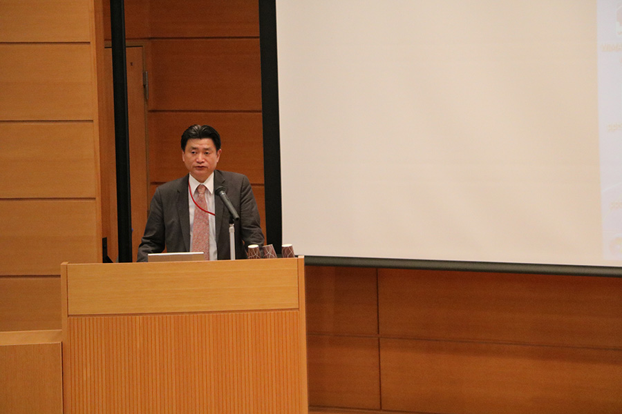 11月21日(火)18:00より東京大学医学部教育研究棟14Fの鉄門記念講堂(本郷キャンパス)において医療産業イノベーションフォーラムの特別講演として「先端技術からのヘルスケア新産業創出」テクノロジカル・オープン・イノベーションフォーラムを開催いたしました。250名に及ぶ参加者にお集まり頂き、開会に先立ち、主催者である東京大学客員教授、Wellbeing Research Campus-Tonomachiリサーチコンプレックス推進プログラム事業化リーダーである木村廣道先生にご挨拶を頂きました。また来賓ご挨拶として科学技術振興機構(JST)イノベーション拠点推進部部長の野口義博様から頂き、キーノートスピーチとして文部科学省科学技術・学術政策局 産業連携・地域支援課長の坂本修一様よりお話を頂きました。