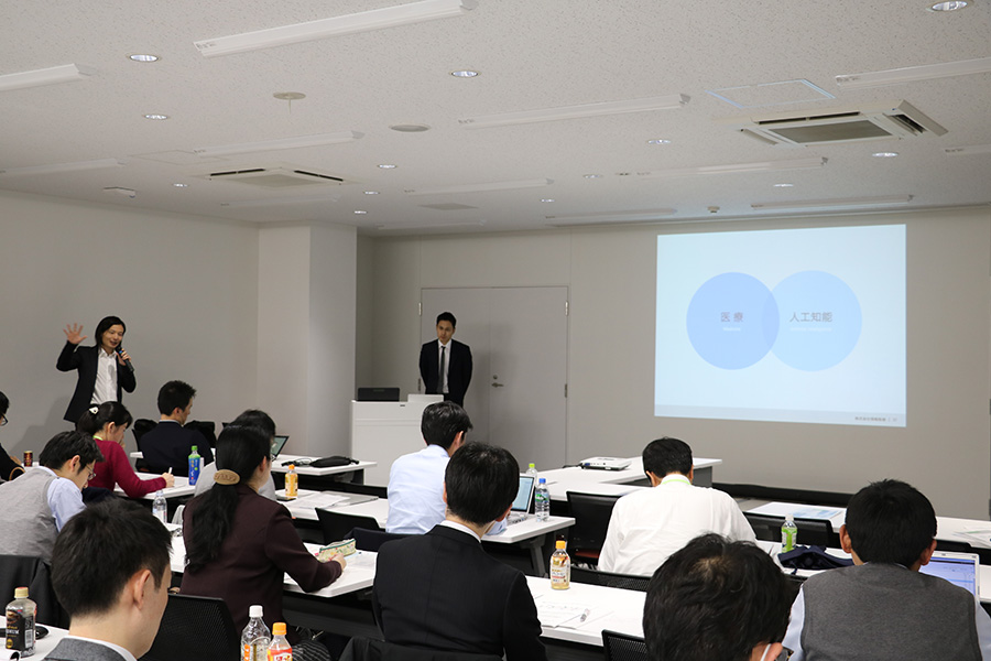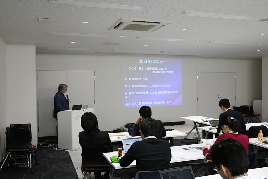 第1回10月26日に開催したスクールの第2回として前回に引き続き慶應義塾大学医学部 医療政策・管理学教授の宮田裕章氏をコーディネーターとして「次世代型ヘルスケアシステムやAIの現状と展望」について日本アイ・ビー・エム株式会社アソシエイト・パートナーの高野敦司氏、慶應義塾大学医学部精神・神経科学教室専任講師の岸本泰士郎氏、東京大学ゲノム病理標準化センター/地域連携推進・遠隔病理診断センター長の佐々木隆氏、株式会社情報医療代表取締役社長の原聖吾氏を講師として各専門分野における現状と展望を講義いただきました。各講師の方々の講義終了後には宮田教授のコーディネートにより参加受講者との意見交換、質疑応答が活発に行われ、第1回にも増して熱のこもったセミナーとなりました。