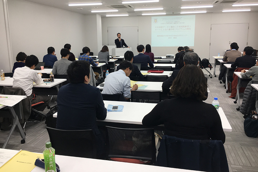 続いて新井康通先生は、高齢者コホート研究の成果を個人に最適化した介護予防・健康増進プログラムの開発につなげる試みについて紹介、多くの具体的なデータは受講者の関心をひきつけていました。