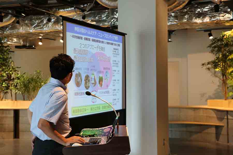 次世代をけん引する人材の育成、ヘルスイノベーションの拠点、シンクタンク機能を狙いとして2019年に殿町RGB TONOMACHI2-A棟に開校予定の神奈川県立保健福祉大学の大学院/ヘルスイノベーション研究科の関係者による殿町視察が行われ、慶應義塾大学殿町タウンキャンパスへの視察及びリサーチコンプレックス推進プログラムの概要説明を行いました。視察、ご説明終了後にはキャンパスのベランダより羽田空港を望める眺望を堪能して頂きました。