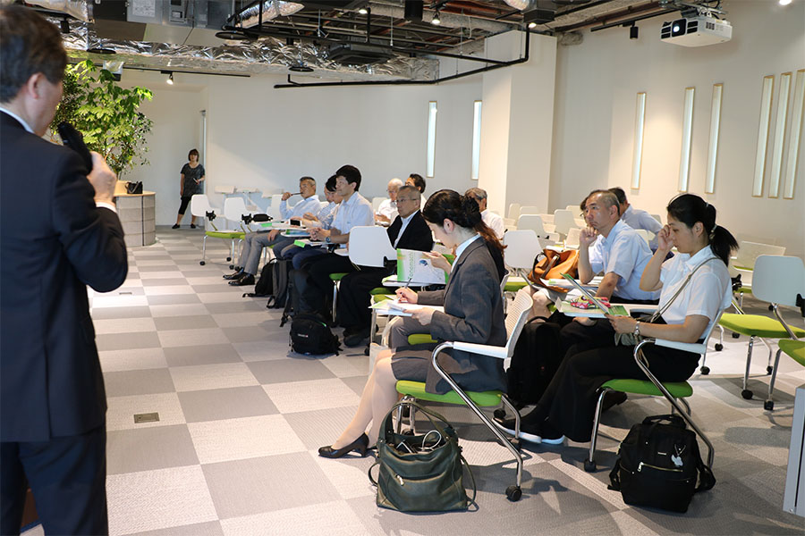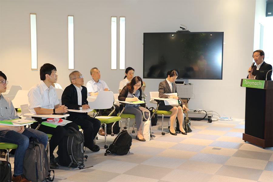 RINK×FINE合同イベントの直前に、イベント参加者のうち創成14名の方々による殿町キングスカイフロントの視察が行われ、本キャンパスとして以下の内容で説明、ご案内をしました。