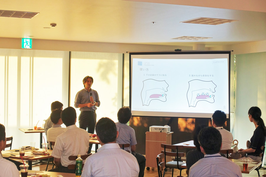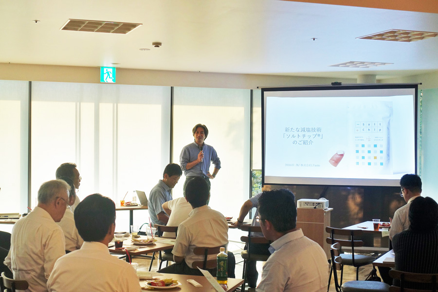 今回は慶應義塾大学の三木先生にご登壇いただき、患者QOLを劇的に変えるインプラント型人工腎臓について、現在の研究経過・実現に向けての課題・社会実装する上での問題点など幅広くお話を頂きました。また、ご自身の研究室から生まれた大学発ベンチャー「(株)LTaste」の食品である、歯の裏に付けるだけで減塩が出来る「ソルトチップ」や、大学発ベンチャーを実際に起業したご経験についてご紹介頂きました。