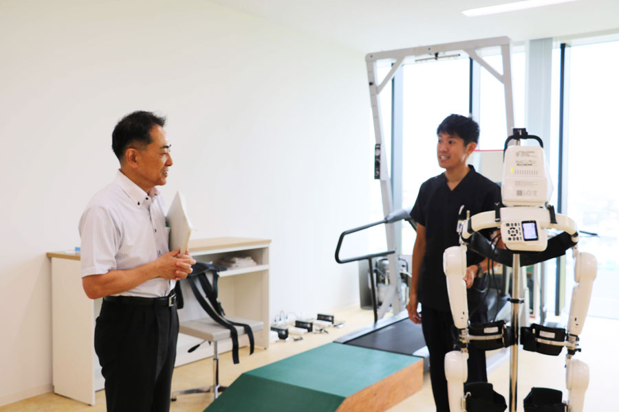 RGB2へ戻り、1階の川崎市キングスカイフロントマネジメントセンターを視察頂き、3階の整形外科学中村雅也教授の研究室においてロボットスーツHALについて澤田研究員から説明を受けました。殿町の全体像とともに、最先端の研究に少しでも触れていただく事が出来ました。