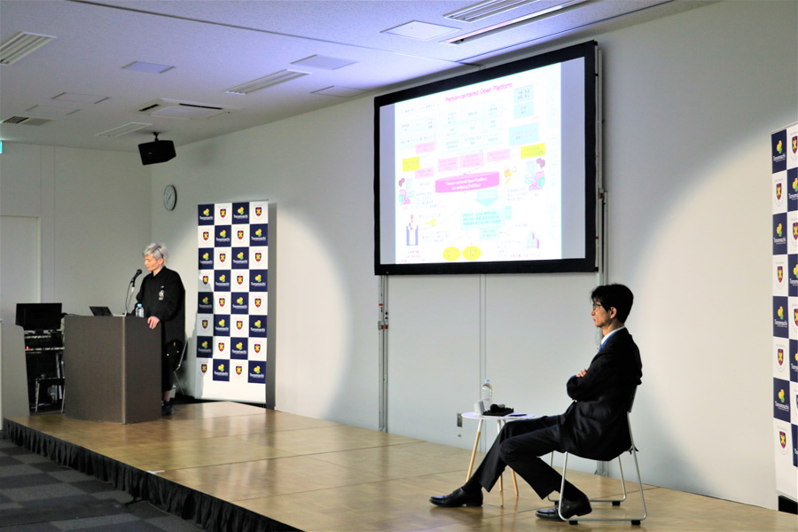 第1部は、慶應義塾大学医学部医療政策・管理学教室の宮田裕章教授によるキーノートスピーチ「The New Civilization:Health and Wellbeingにおける必須の論点とは何か」を講演頂きました。そのまま宮田先生に座長をお努めいただきICTを使ったPeOPLe(Person centered Open Platform for Wellbeing)のオープンプラットフォームに関連したSpecial Session-パイロット事例紹介-として5名の方々よりご発表を頂き質疑応答を行いました。休憩をはさみ登壇者の方々でのパネルディスカッションも行い活発な意見交換がされました。