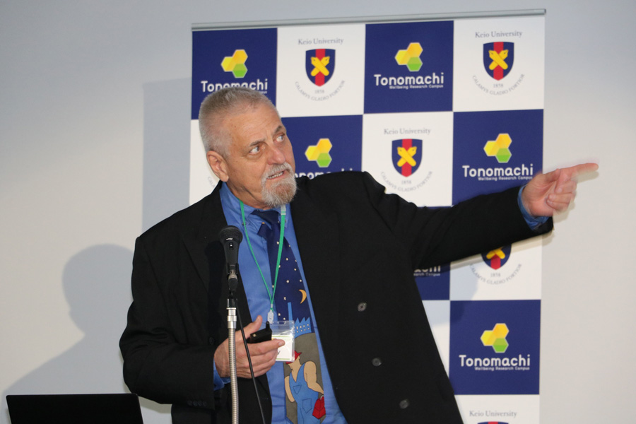 13時から始まったフォーラムでは、最初に主催者である慶應義塾大学ウェルビーイングリサーチセンター特任教授、リサーチコンプレックス推進プログラムオーガナイザーである吉元良太先生が開会の挨拶を述べ、続いて今回ご共催を頂いた川崎市の臨海部国際戦略本部国際戦略推進部部長の白鳥滋之氏よりご挨拶を頂きました。