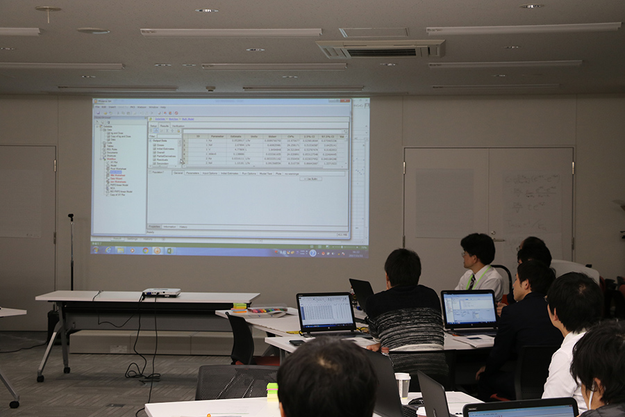 今回は主幹をお勉め頂いている慶應義塾大学医学部臨床薬剤学の谷川原祐介教授が急病の為ご欠席となりましたが、京都大学大学院薬学研究科の山下富義教授をはじめとしたチューターの先生方の指導の下3日間にわたる講義とPCを用いたハンズオン演習を行い、大学院生、企業の研究者、行政機関からの21名の参加者が熱心に受講し、最終日には無事全員に「修了証」が授与されました。